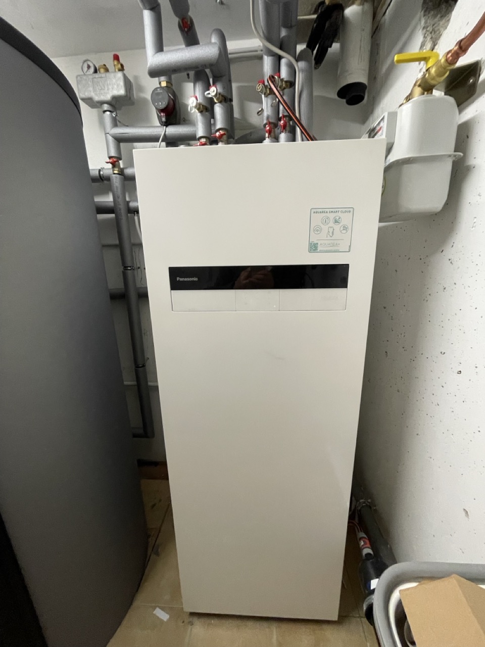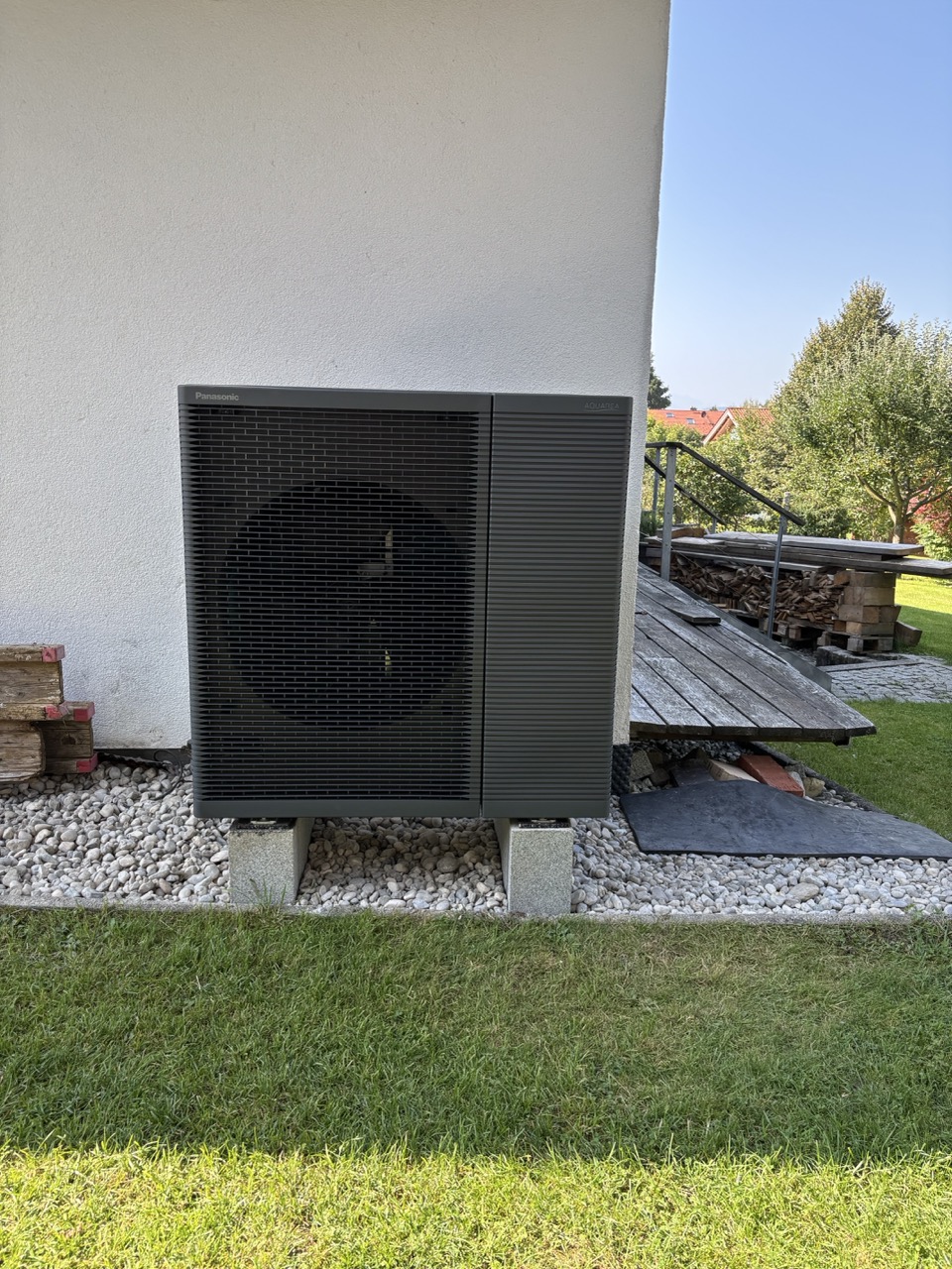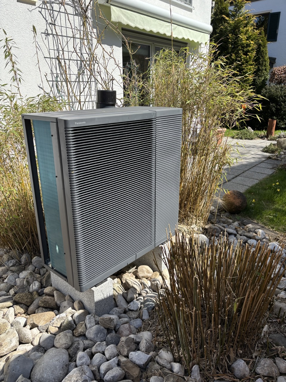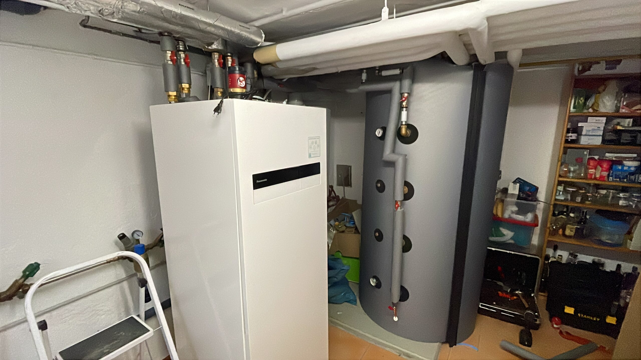 Die 9kW Wärmepumpe ersetzt die 25 Jahre alte Gas-Heizung. Um eine mögichst hohe Autarkie mit der Wärmepumpe zu erreichen wurde ein 800 Liter Pufferspeicher verbaut und die Photovoltaik-Anlage um 6 kwp erweitert.